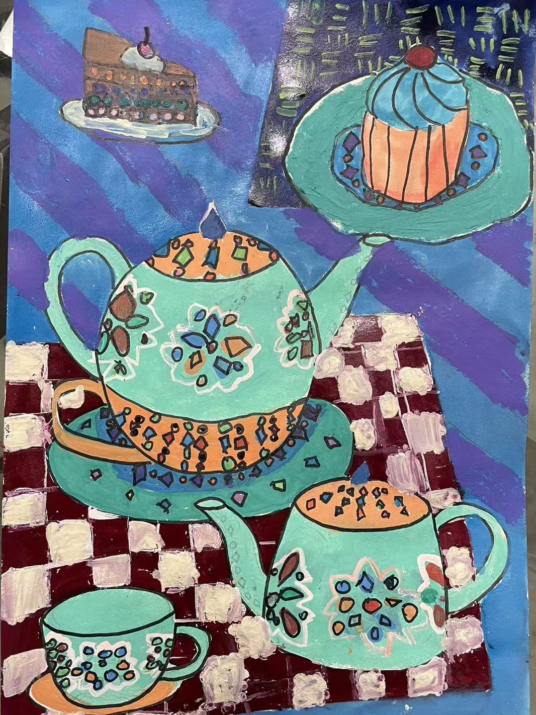 - Combine personal creativity to make the tea set artwork lively and expressive.