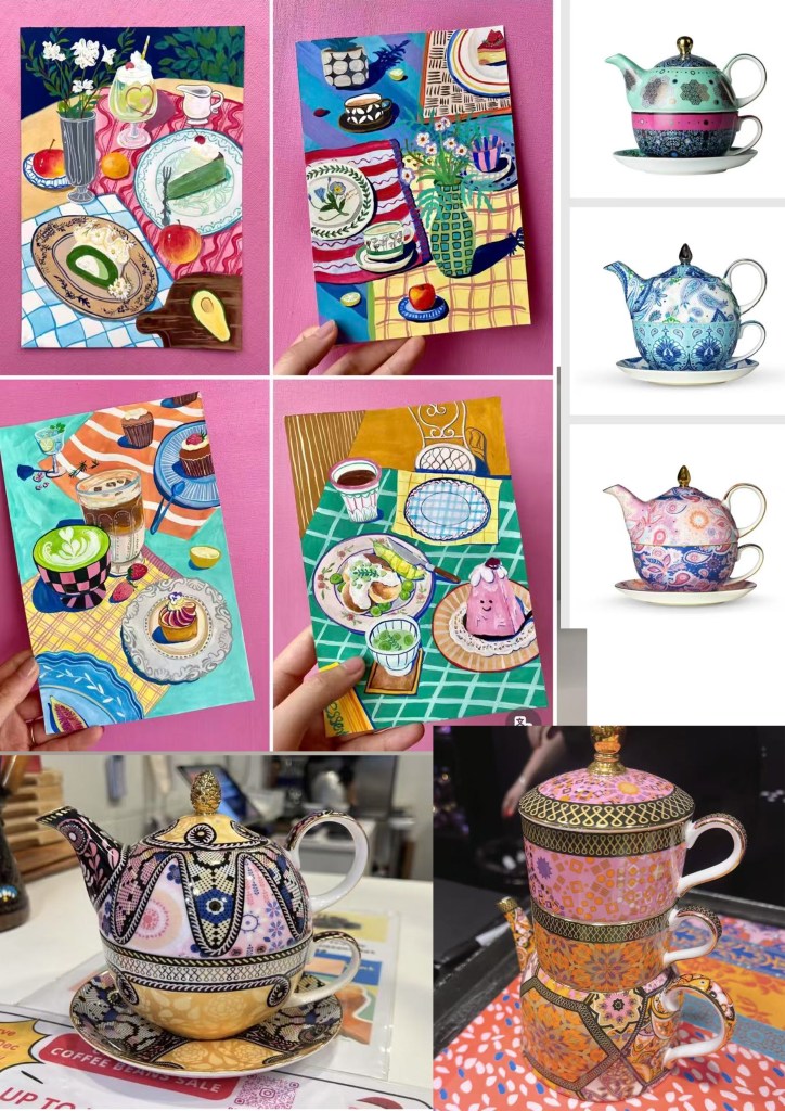 - Use your imagination to create new paintings by combining different styles, angles, patterns and details of teacups with people, animals and other things