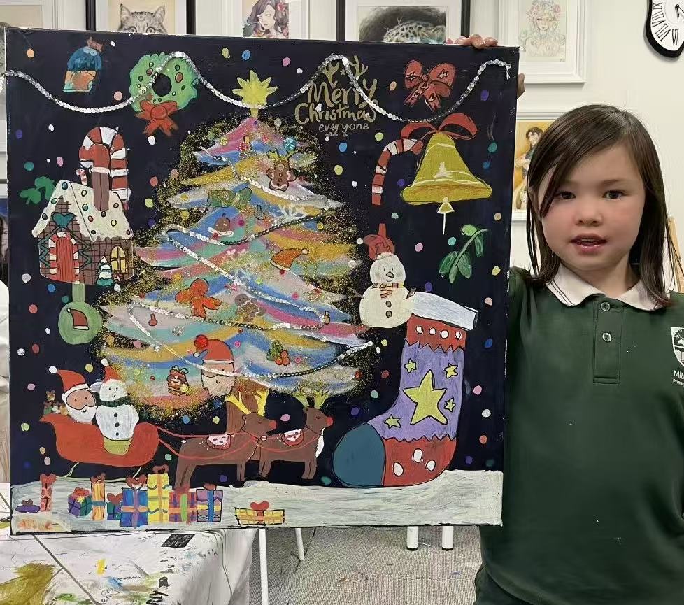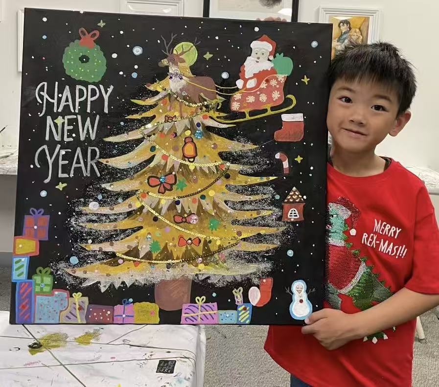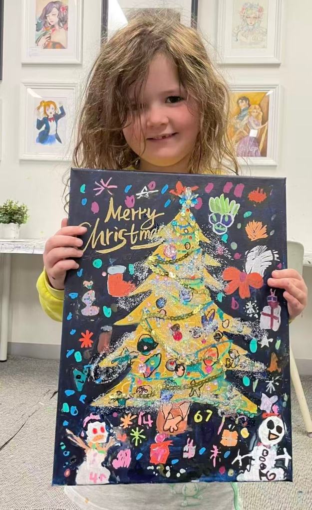 - 学习圣诞树的造型颜色特征。探索丙烯颜料的覆盖力与金属颜料的光泽表现。