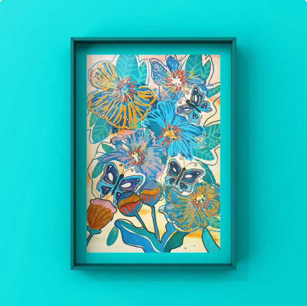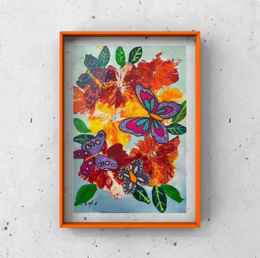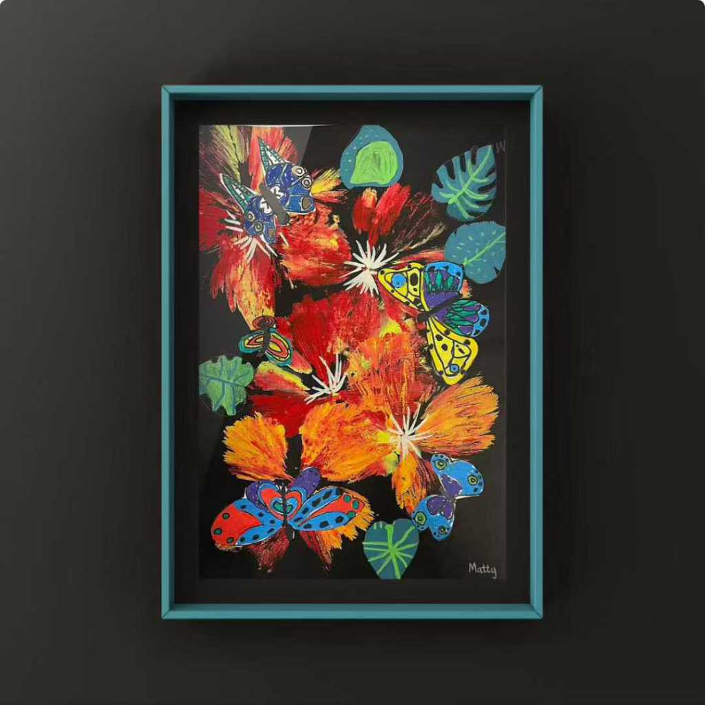 2、学习为拓印花朵添加细节,并设计有图案的蝴蝶