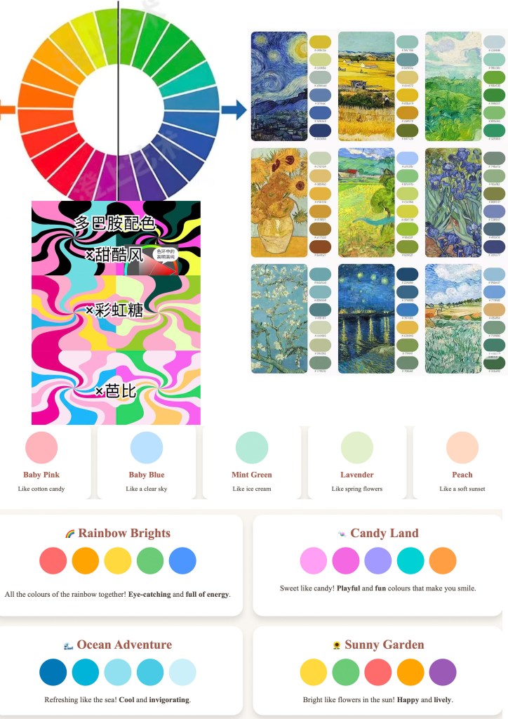2、学习什么是冷色暖色莫兰迪色,马卡龙色,尝试为自己的作品搭配合适的颜色