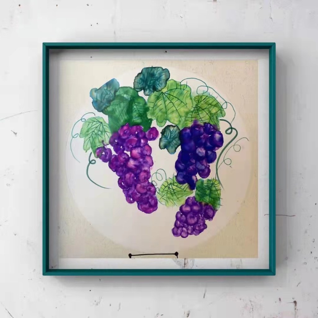 教学过程:先给学生看真实的枇杷图片,了解枇杷果实和叶子的形状特征。然后给学生看关于植物绘画的构图,学习疏密有致的排列方式,最后教学生如何用海绵和丙烯颜料画出枇杷果。
