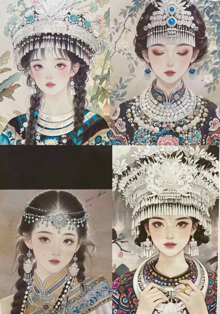 - Exploring Chinese ethnic minority costumes and female portrait features.