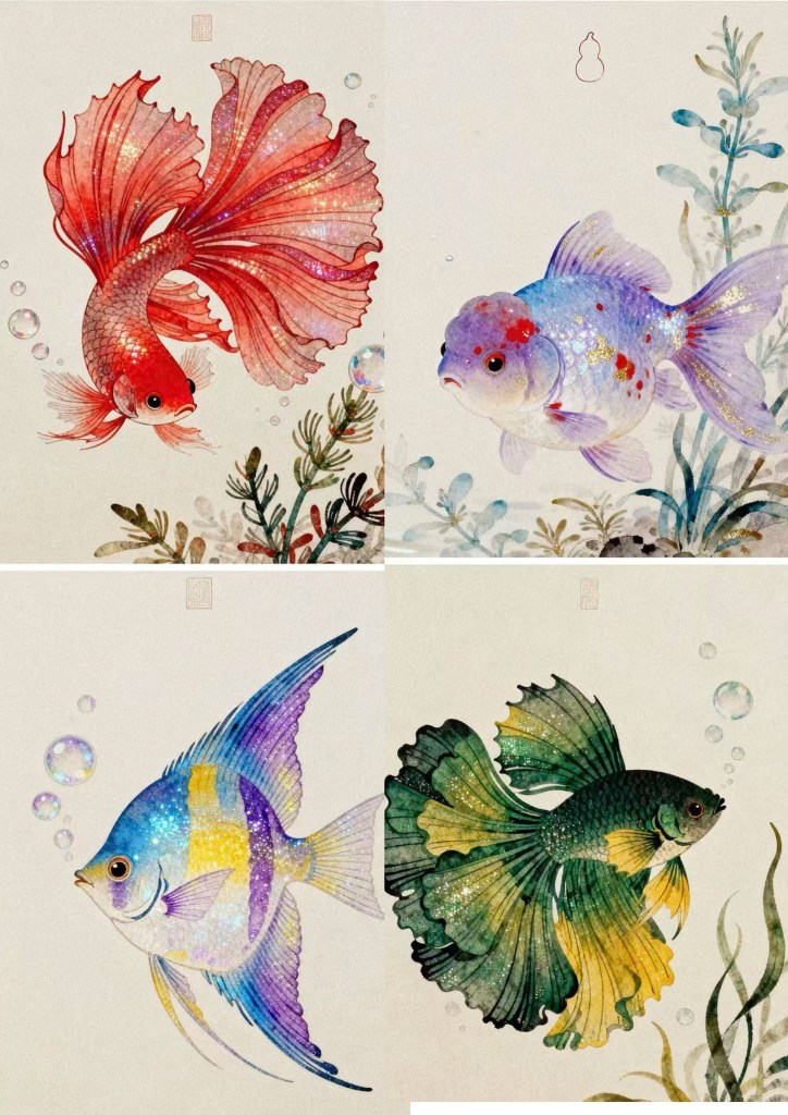 金鱼以其灵动的姿态与绚丽的色彩著称,展现出梦幻而富有生命力的视觉美感。在这个主题中,我们将学习