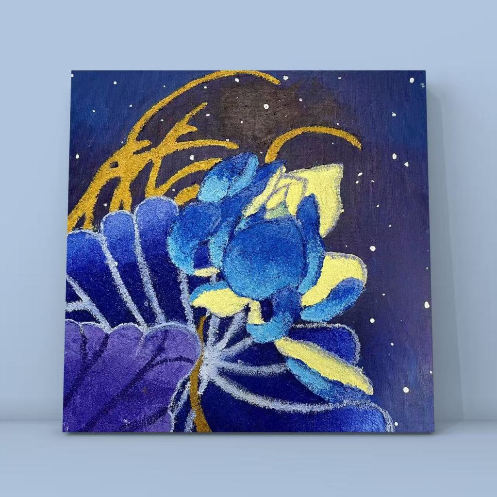 - 结合个人创意,在画布上创作富有质感与表现力的沙画作品。