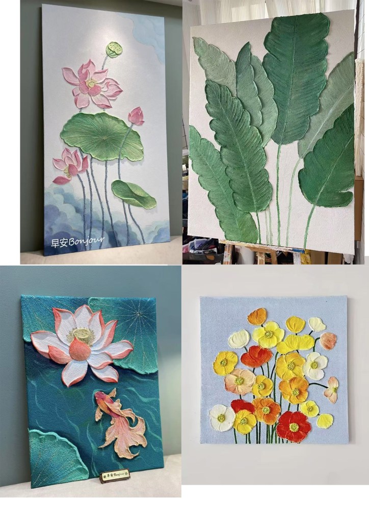 - Combine personal creativity to create textured and expressive artworks on canvas.