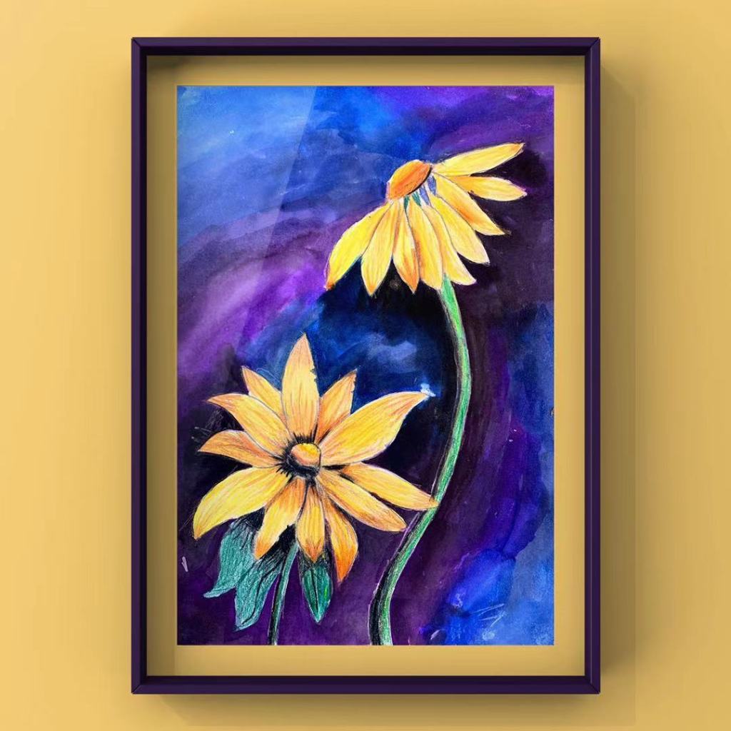 教学目标:让学生了解菊花的形态特征,学会如何用彩铅利用基本的素描理论画出雏菊