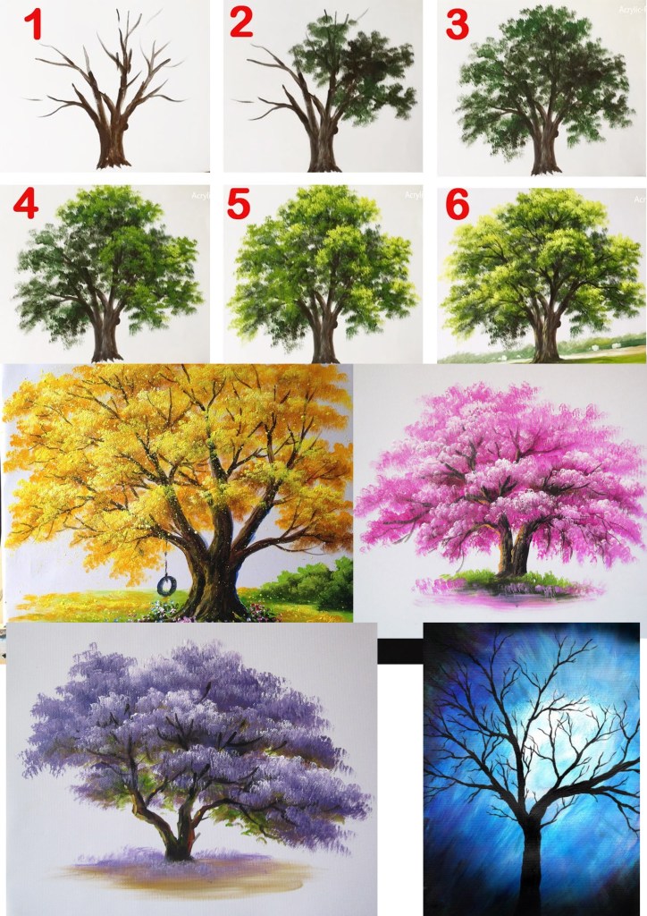 1、To understand the materials of acrylic painting and the basic skills of painting trees