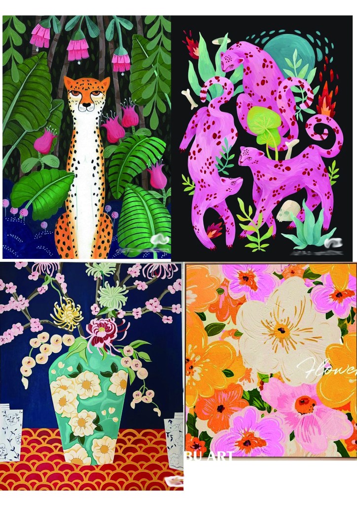 4、学习装饰画的构图和造型,体验丙烯颜料在画布上的不同表现