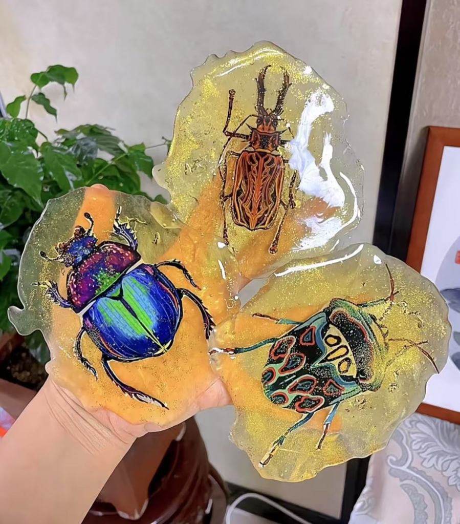 在这堂课中,学生将使用塑料片、亮粉和马克笔,模拟昆虫琥珀的光泽与美感。学生可选择不同形状的透明塑料,加上亮粉制作出琥珀的效果,并在上面绘制喜爱的昆虫,为原本普通的塑料增添生命力与艺术感。