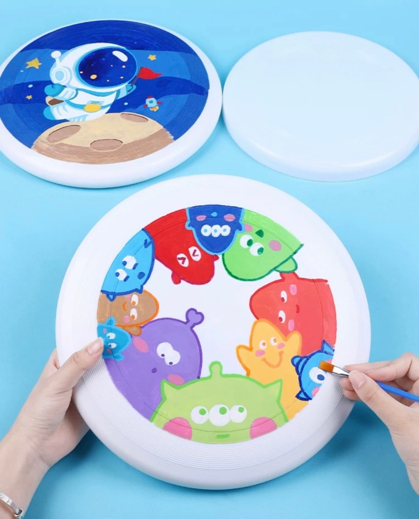 Frisbee painting is a creative activity where you decorate the surface of a frisbee with your own designs. It’s a great way to express your creativity and make something that’s not only beautiful but also functional—you can play with your painted frisbee afterward! together!